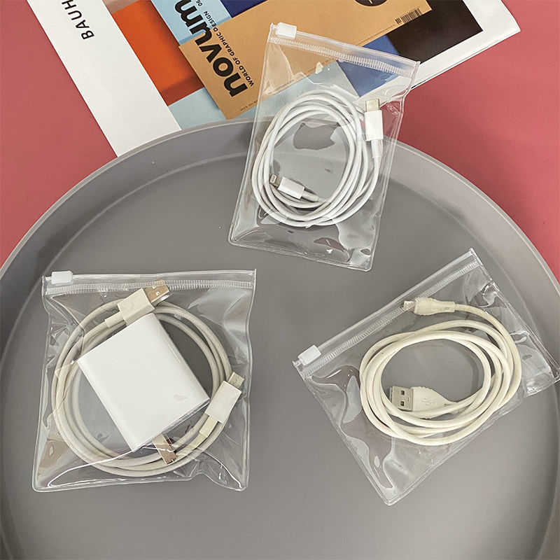 Portable Charging Cable Organizer, Data Cable Storage Bag, Transparent Zipper Pouch quantity