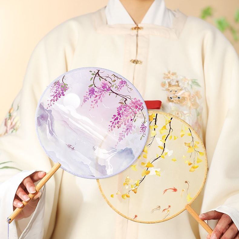 Round Fan Ancient Style Dance Fan Children's Chinese Style Hanfu Fan Qipao Portable Summer Small Round Fan Long Handle Tassel quantity