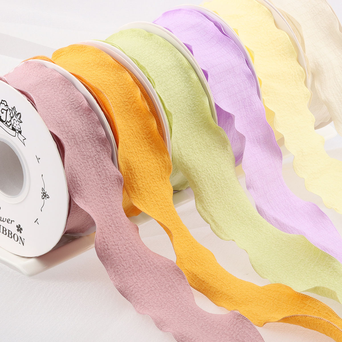 Ruffled Lace Edge Ribbon Cake Bouquet Packaging Fish Tail Tulle Linen Wave Lace Ribbon Colorful Tie quantity