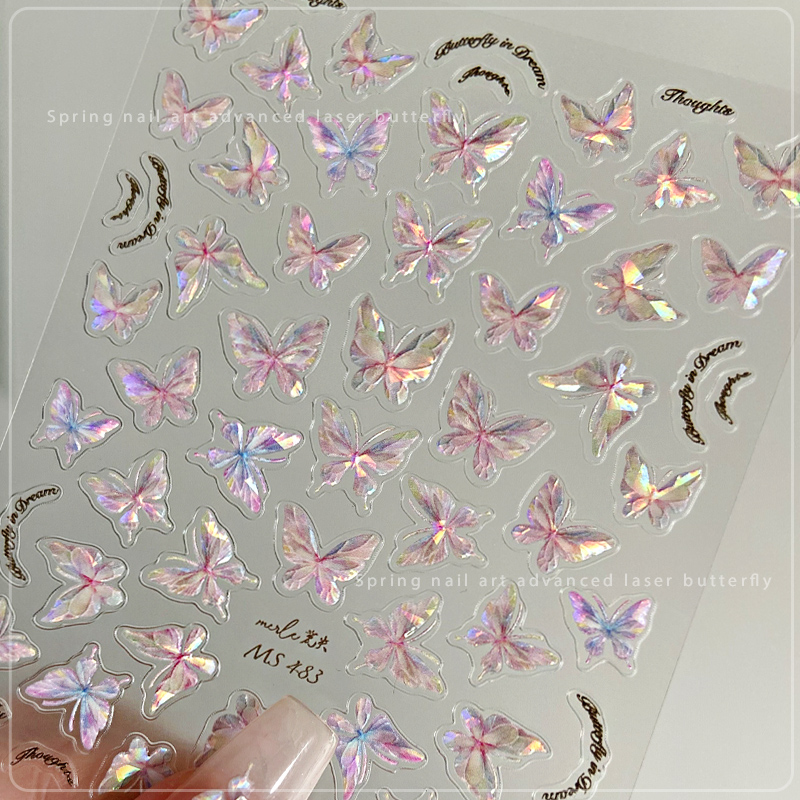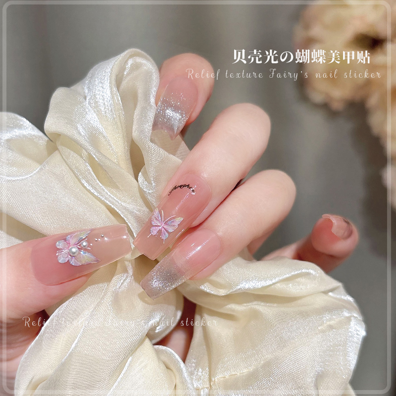 Shell Light Butterfly Nail Stickers, 2024 New Style, Colorful, Embossed Butterfly Nail Stickers, Popular Trend quantity