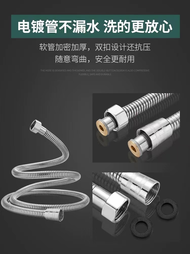 Shower Hose, Stainless Steel Universal Interface, Shower Spray Hot Water Outlet Pipe, Bathroom Explosion-Proof Rain Connection Pipe quantity