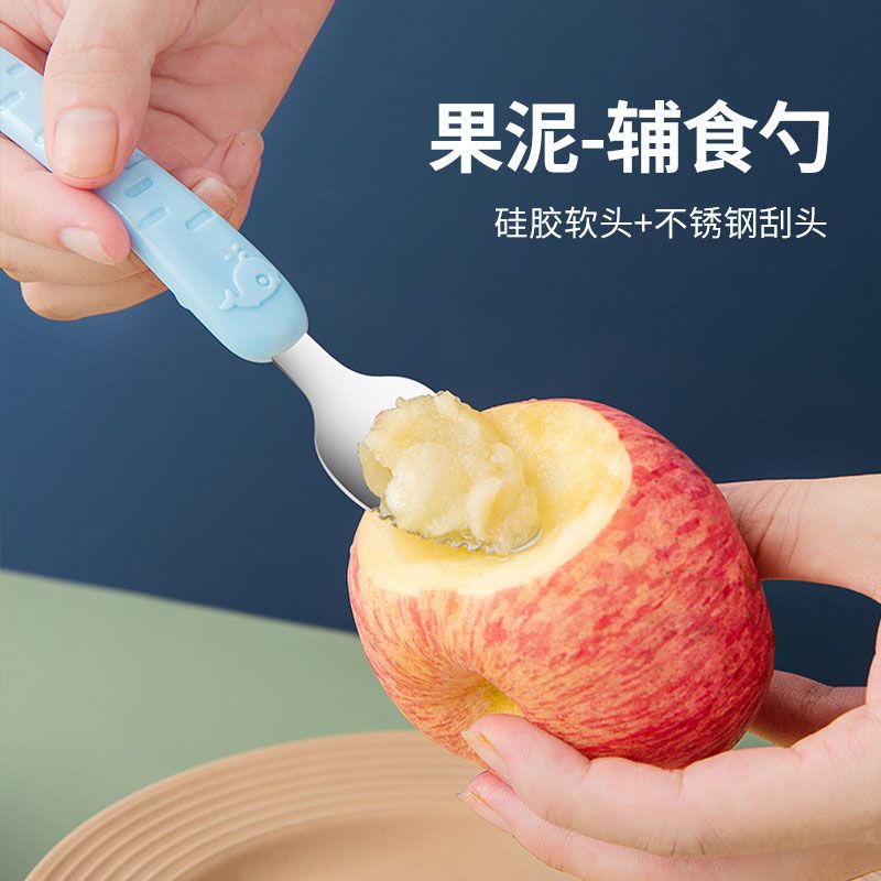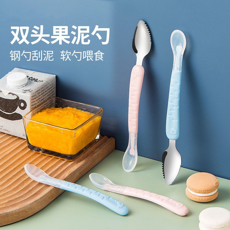 Silicone Scraper Fruit Baby Eating Fruit Artifact Scraper Spoon Baby Fruit Puree Fork Spoon 3-in-1 quantity