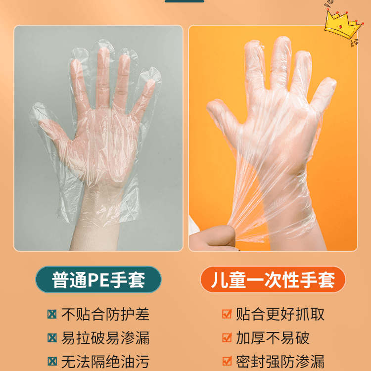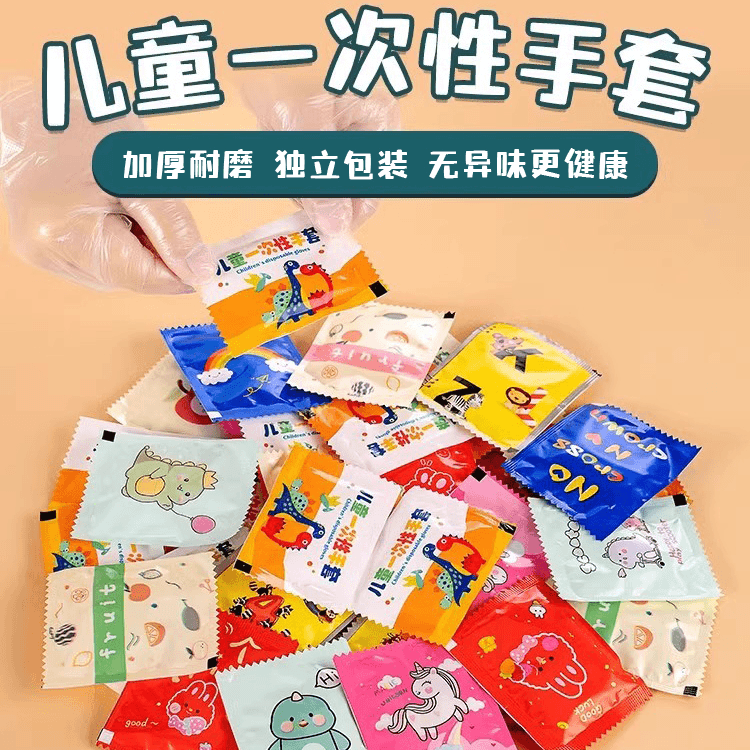 Small Pack Baby Gloves Thickened PE Plastic Disposable Gloves for Children Food Use Individually Packaged quantity