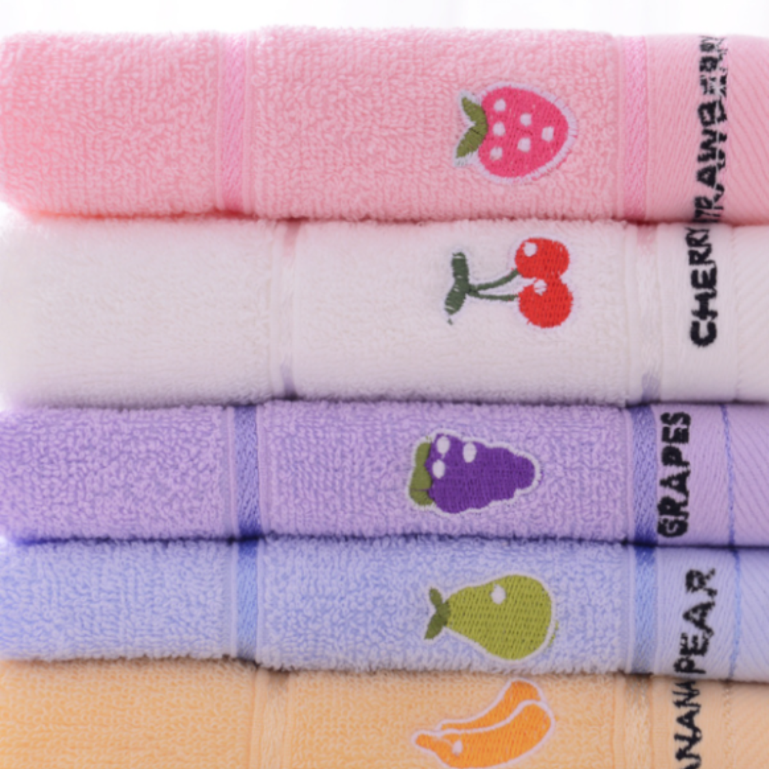 Solid Color Rectangular Children's Soft Absorbent Cute Baby Fruit Towel Face Towel Home Use Pure Cotton quantity