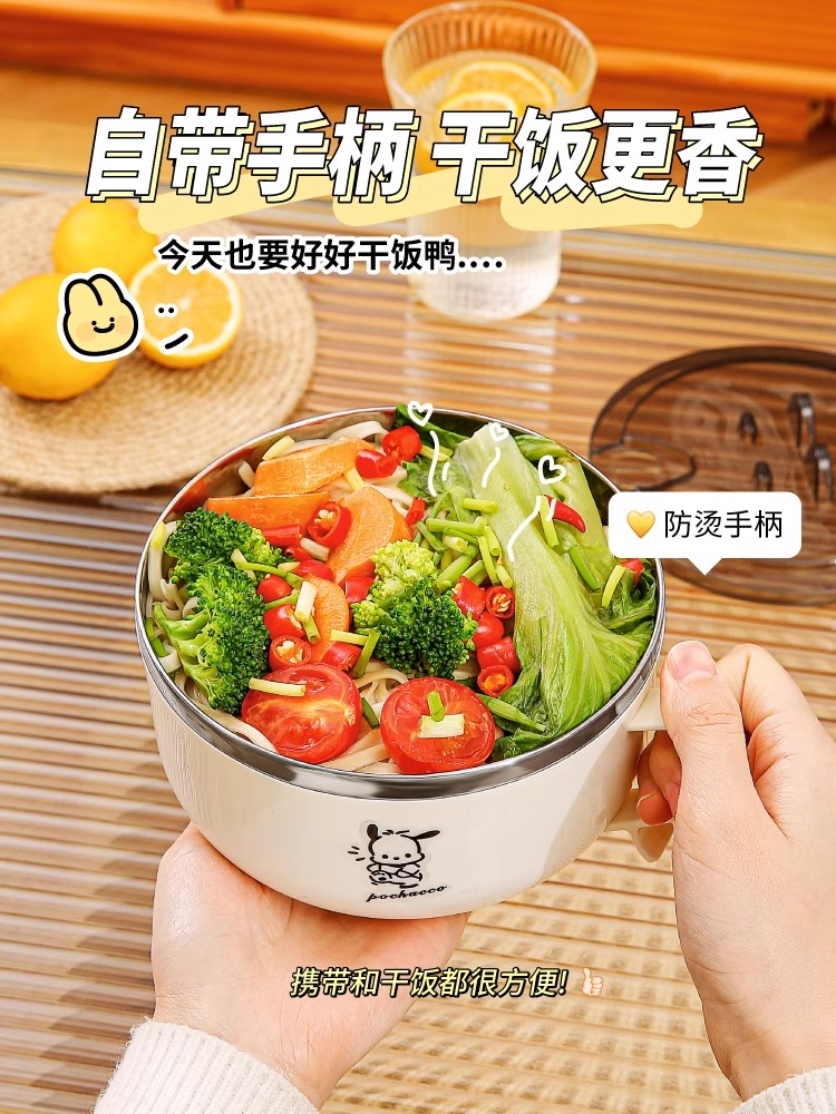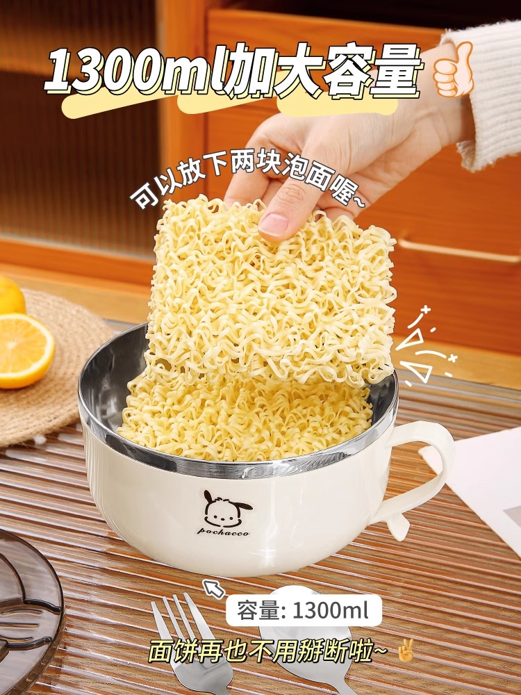 Нержавеющая чаша для лапши с крышкой, удобная чаша для студентов