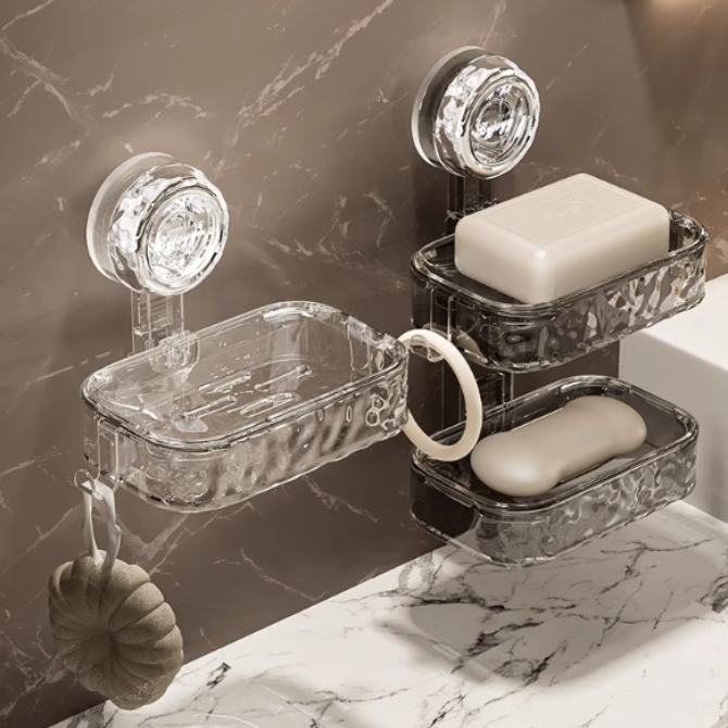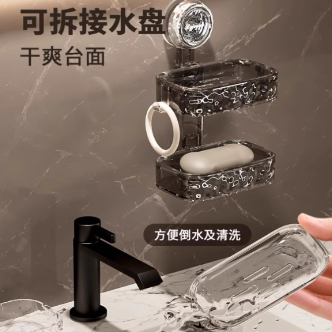 Suction Cup Soap Holder Wall-Mounted Household Bathroom Creative Double-Layer Draining Laundry Soap Holder No-Drill Soap Box quantity