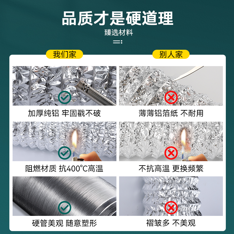 Thick Smoke Pipe, Expandable Aluminum Ventilation Duct, Kitchen Range Hood Exhaust Pipe Accessories, Plastic Bath Heater quantity