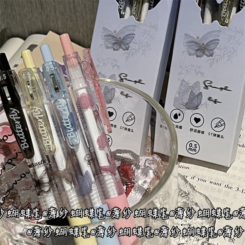 Thin Gauze Butterfly Quick-Drying Gel Pen Ins Style High Aesthetic Student Girl's Heart Good to Use Smooth 0.5 quantity