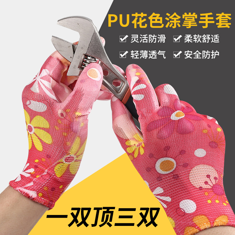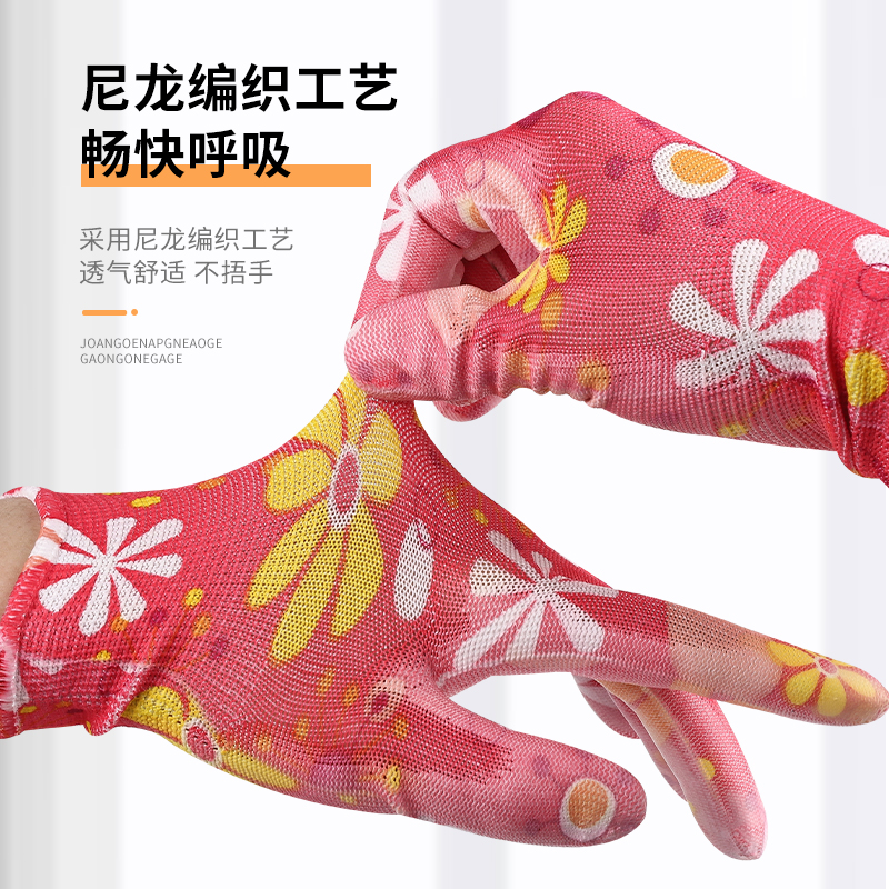 Thin Nylon Printed PU Gloves, Anti-Slip, Breathable, Anti-Static Work Gloves quantity