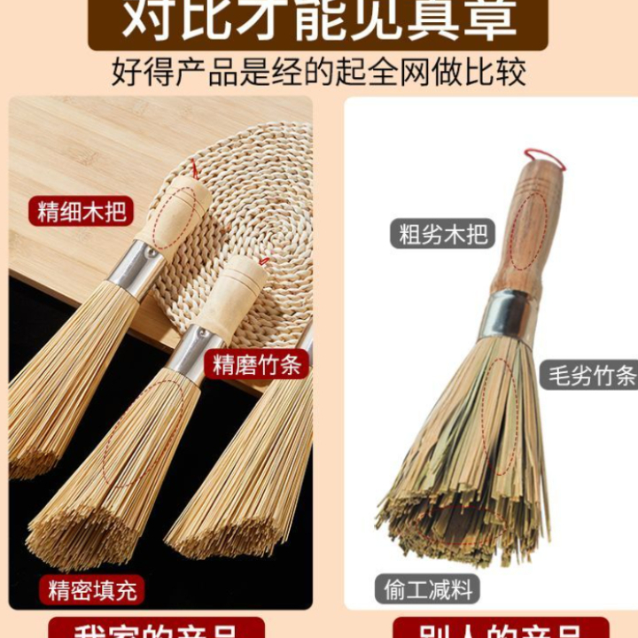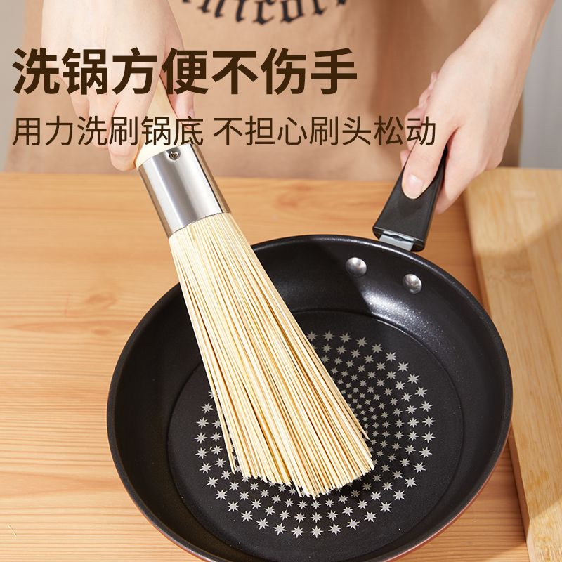 Traditional Bamboo Pot Brush - Kitchen Cleaning Tool for Pots and Pans quantity