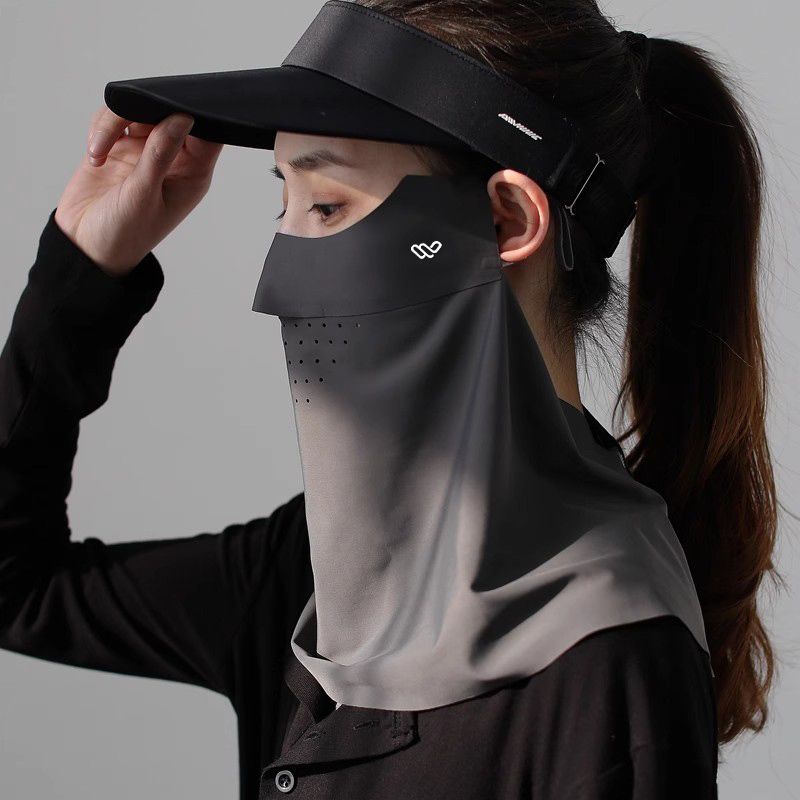 Вангбао Зеленый - Летняя Защита Глаз и Шеи - Дышащая Защита от Солнца - Бесшовная Долгая Маска - [Розовый + Темно-серый] 2 Штуки