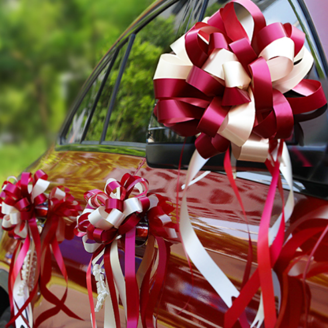 Декорации для свадебного автомобиля, цветные ленты, аксессуары
