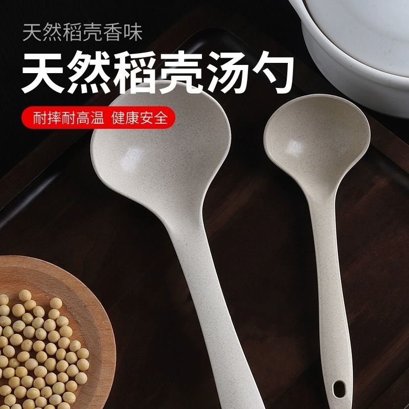 Wheat Fiber Soup Spoon Non-Stick Pot Spoon Drop-Resistant Heat-Resistant Long Handle Large and Small Soup Spoon for Home Use quantity