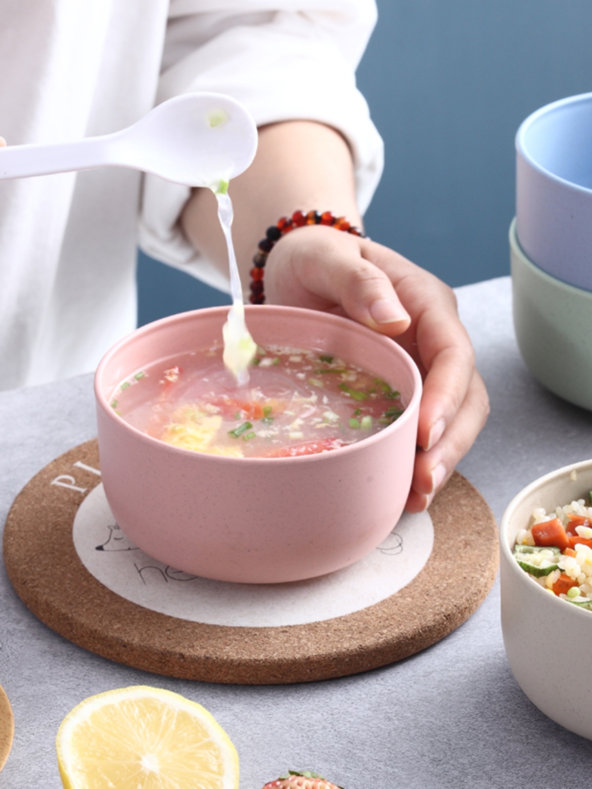 Чаша для завтрака из соломы, с ложкой, для детей, пластиковая