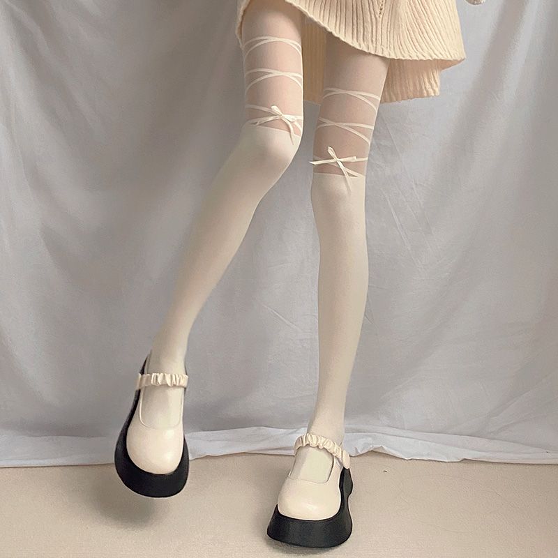 Белый бантик перекрестные завязки чулки для женщин cos чистый стиль комбинированные jk летние тонкие молочно-белые колготки y2k
