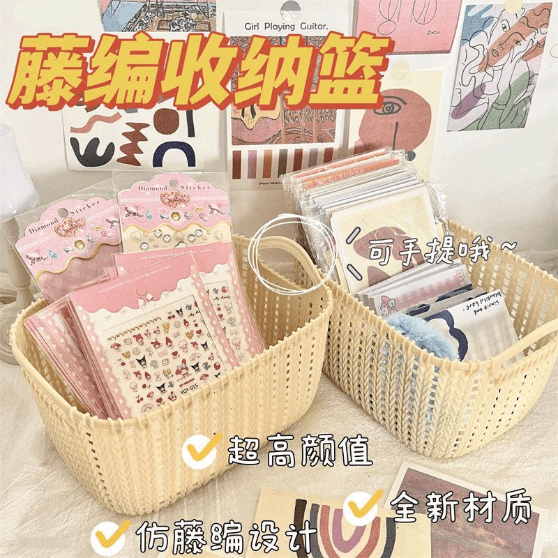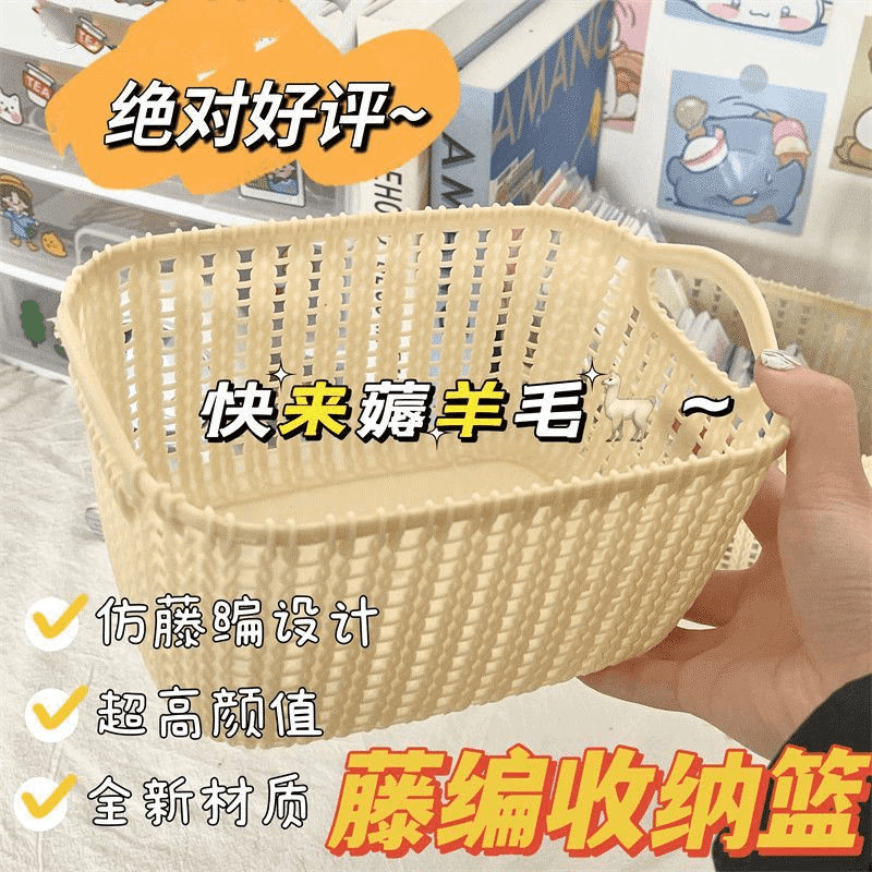 Wicker Storage Basket Thickened Plastic Desktop Miscellaneous Storage Box Bathroom Cosmetics Storage Basket Organizer quantity