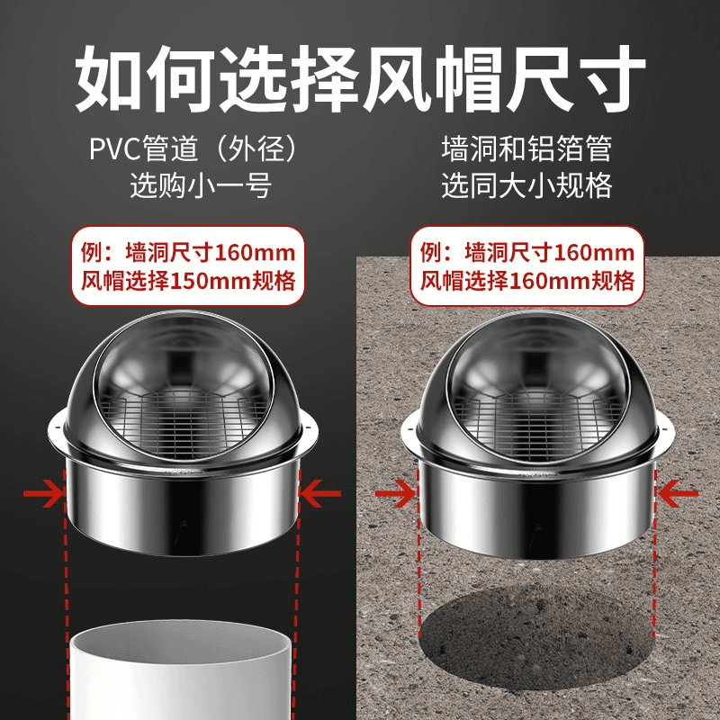 Windproof Kitchen Exhaust Rain Cap Stainless Steel Vent Cover for Exhaust Pipe quantity