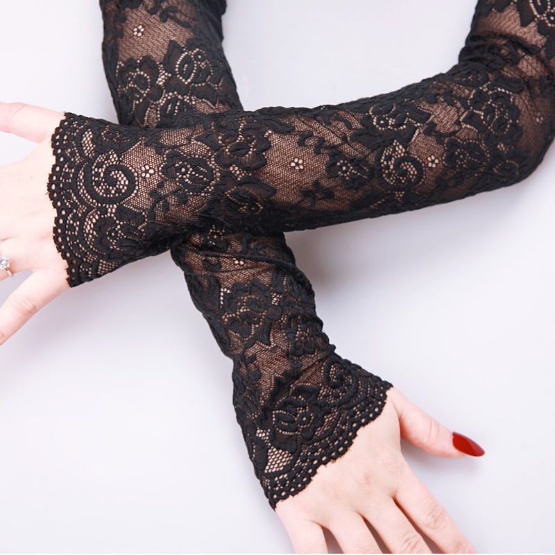 Women's Black Lace Long Arm Sleeves UV Protection Driving Fake Sleeves Spring Autumn Summer Sun Protection Thin Sleeves quantity
