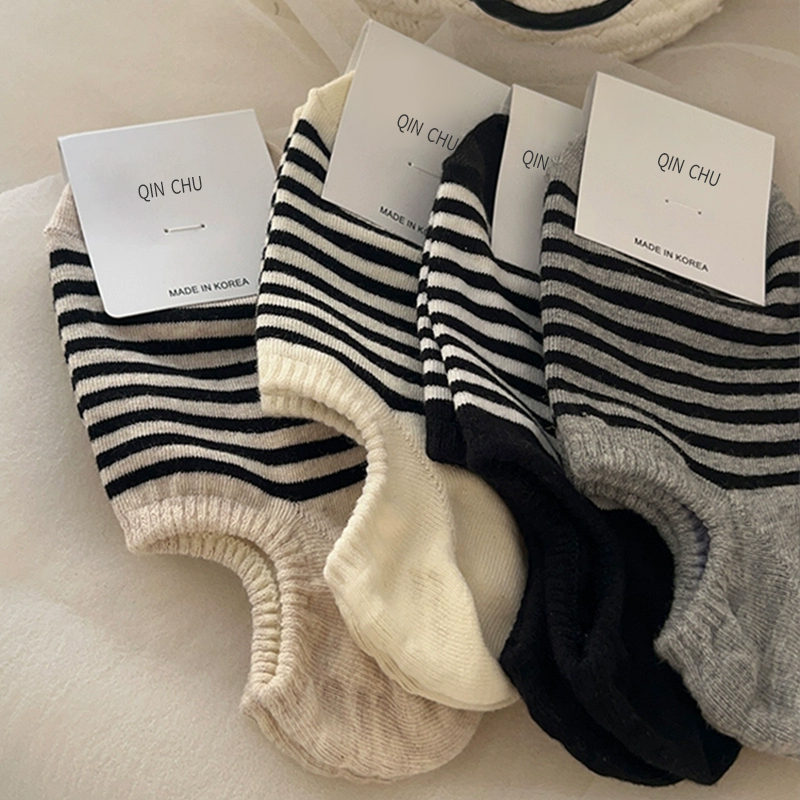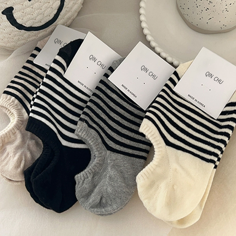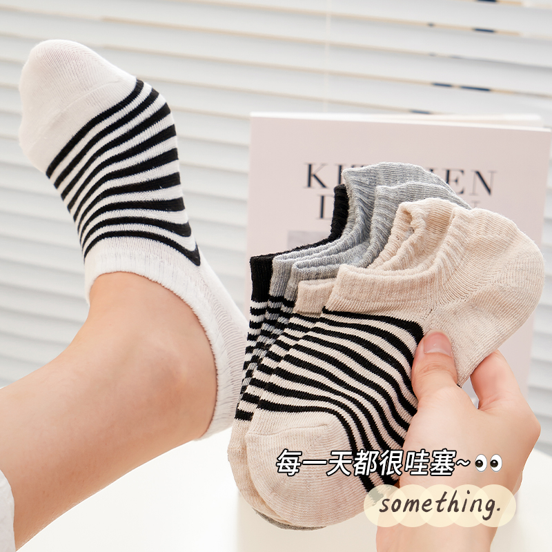 Женские носки, короткие, противоскользящие, для весны и лета, в черно-белую полоску