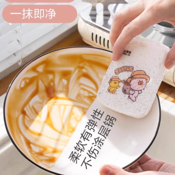 Спонж для мытья посуды из древесной целлюлозы, компрессированный, не впитывающий жир, для кухни