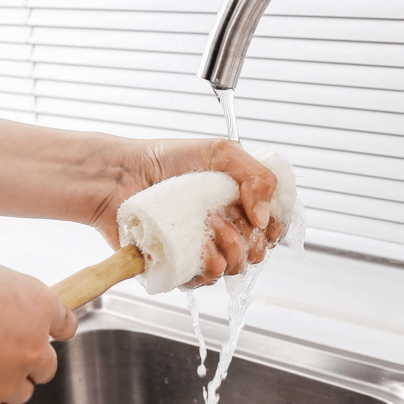 Короткая деревянная ручка [Щетка для мытья посуды из люфы] (1 штука)